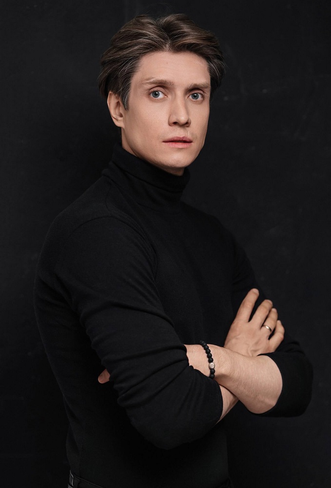 37 лет, рост 195см. Окончил Школу-студию МХАТ, Мастерская Романа Козака и Дмитрия Брусникина.